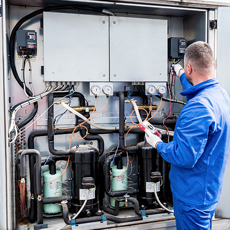 - Vérification du circuit frigorifique afin de détecter d’éventuelles fuites de fluides frigorigènes et contrôler l’étanchéité du circuit